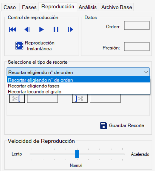 Permite seleccionar un fragmento «eligiendo el n° de orde», !eligiendo fases» o «tocando el grafo», para guardar separadamente: