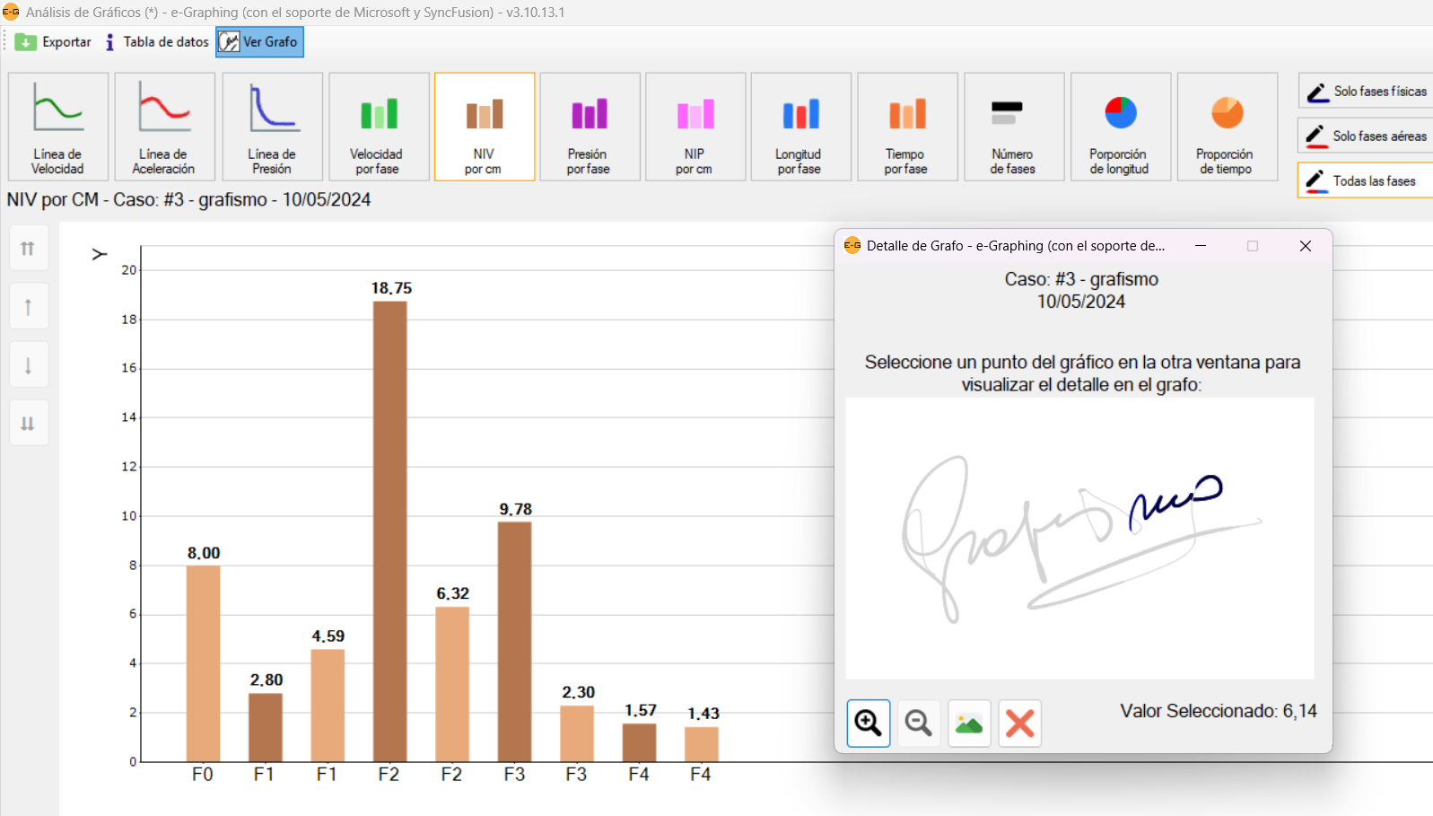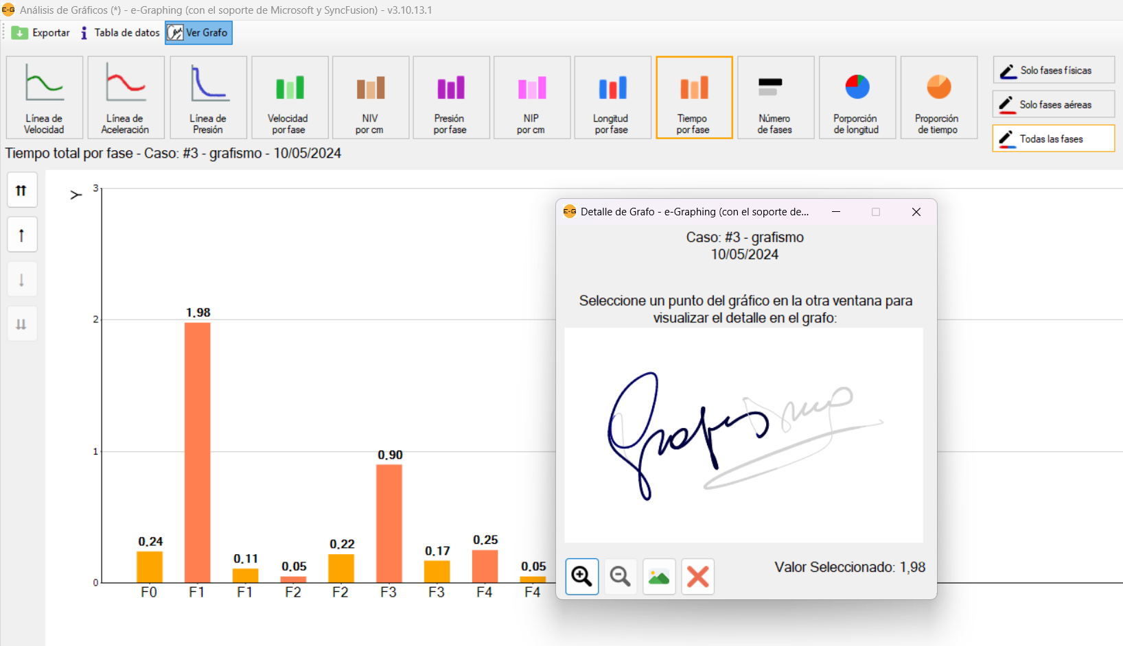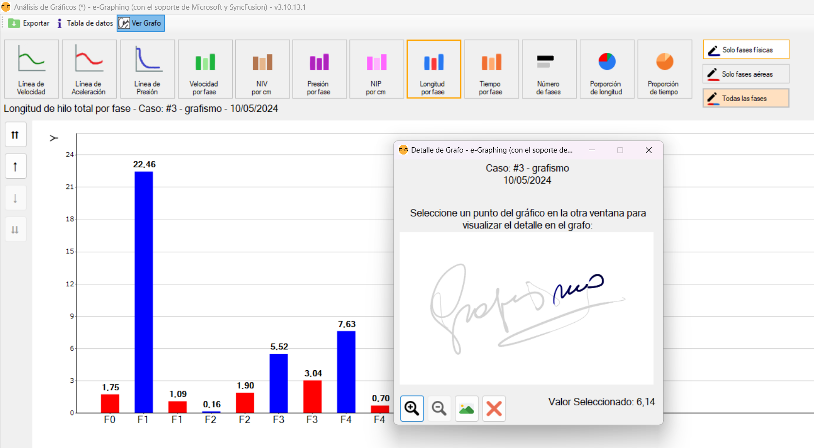 Ofrece una pantalla emergente con el “grafo» o captura completa del grafismo capturado, en el que se destaca la sucesión de las fases con la posibilidad de usar el zoom con escroleado vertical y horizontal: