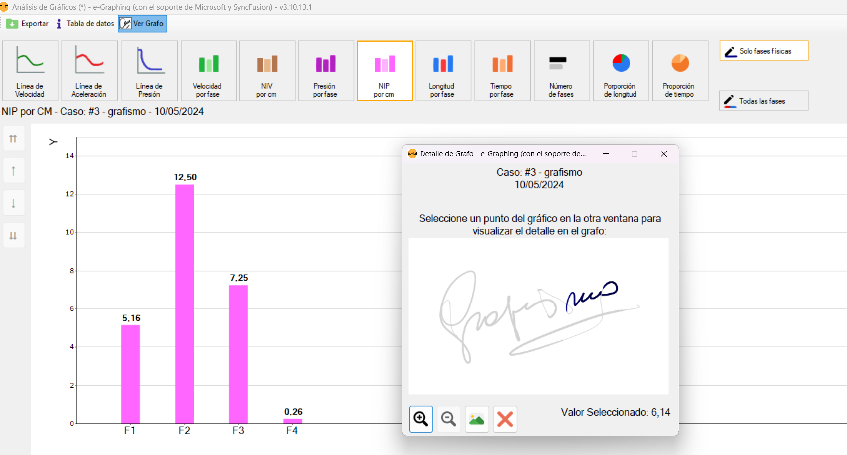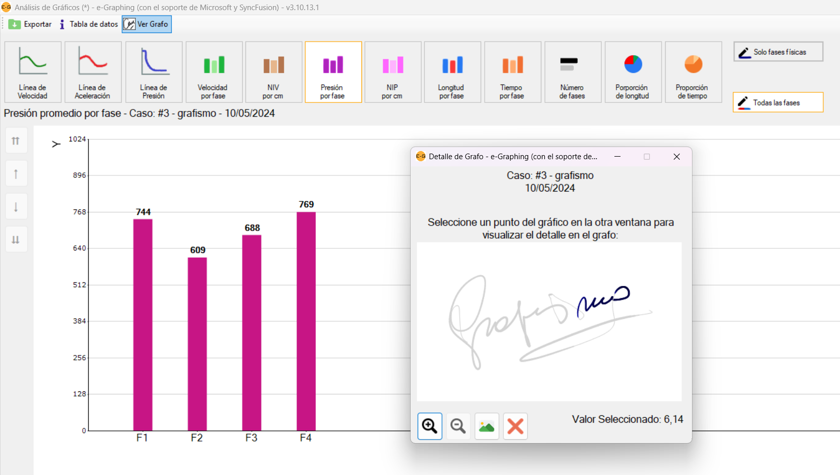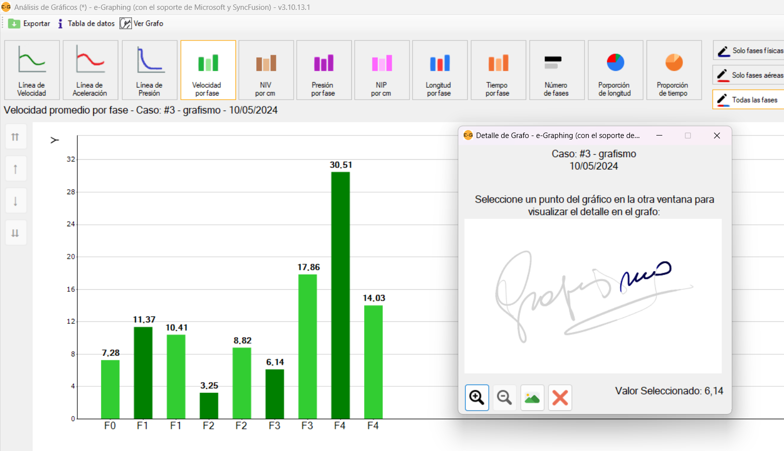 Ofrece una pantalla emergente con el “grafo» o captura completa del grafismo capturado, en el que se destaca la sucesión de las fases con la posibilidad de usar el zoom con escroleado vertical y horizontal: